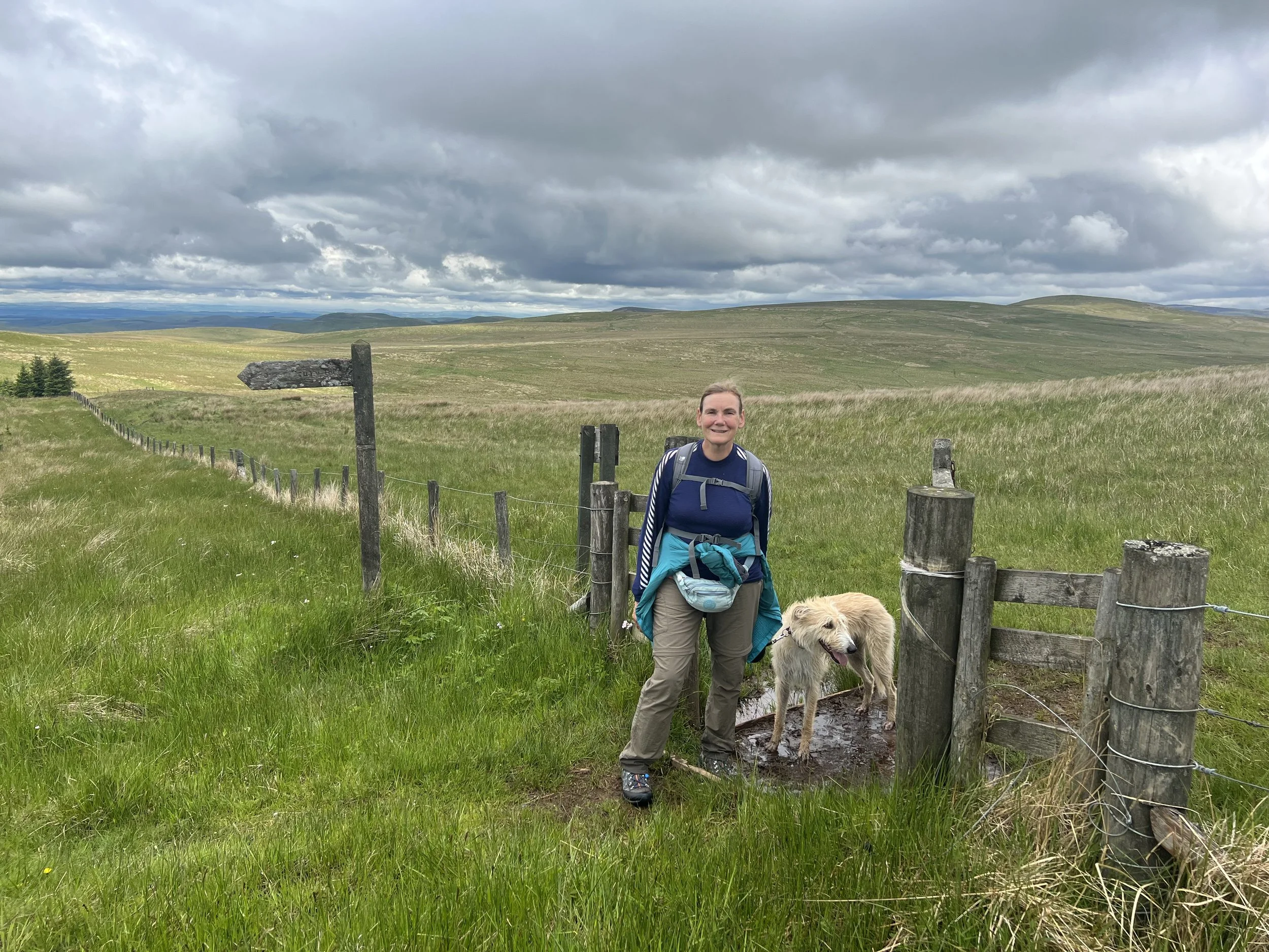 It’s a pleasure to walk over the rolling Cheviot hills. The grassy rectangle outlined by a low ditch in the middle distance is Chew Green roman fort, on Dere Street, high in the Cheviots.